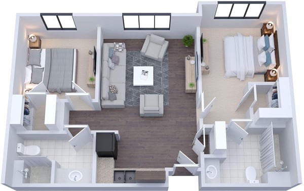 Choose from one- and two-bedroom floor plans for your new residence. Decorate to your heart’s content and host guests in your stylish, spacious new apartment. And in our community, chores like housekeeping and maintenance are a thing of the past thanks to our dedicated team members. Take a look at our floor plans below to find a residence that fits your needs and lifestyle!